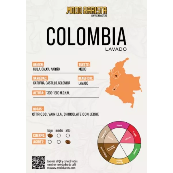 Cafe De Especialidad Colombia Lavado en Grano x 250 g MODO BARISTA